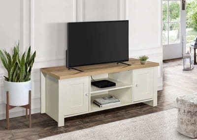 A beautiful addition to any room in your home, this Highgate Large TV Unit is the perfect TV stand. Featuring 2 large shelves for entertainment units as well as 2 large drawers ideal for storing away DVD’s blankets and various other items.
