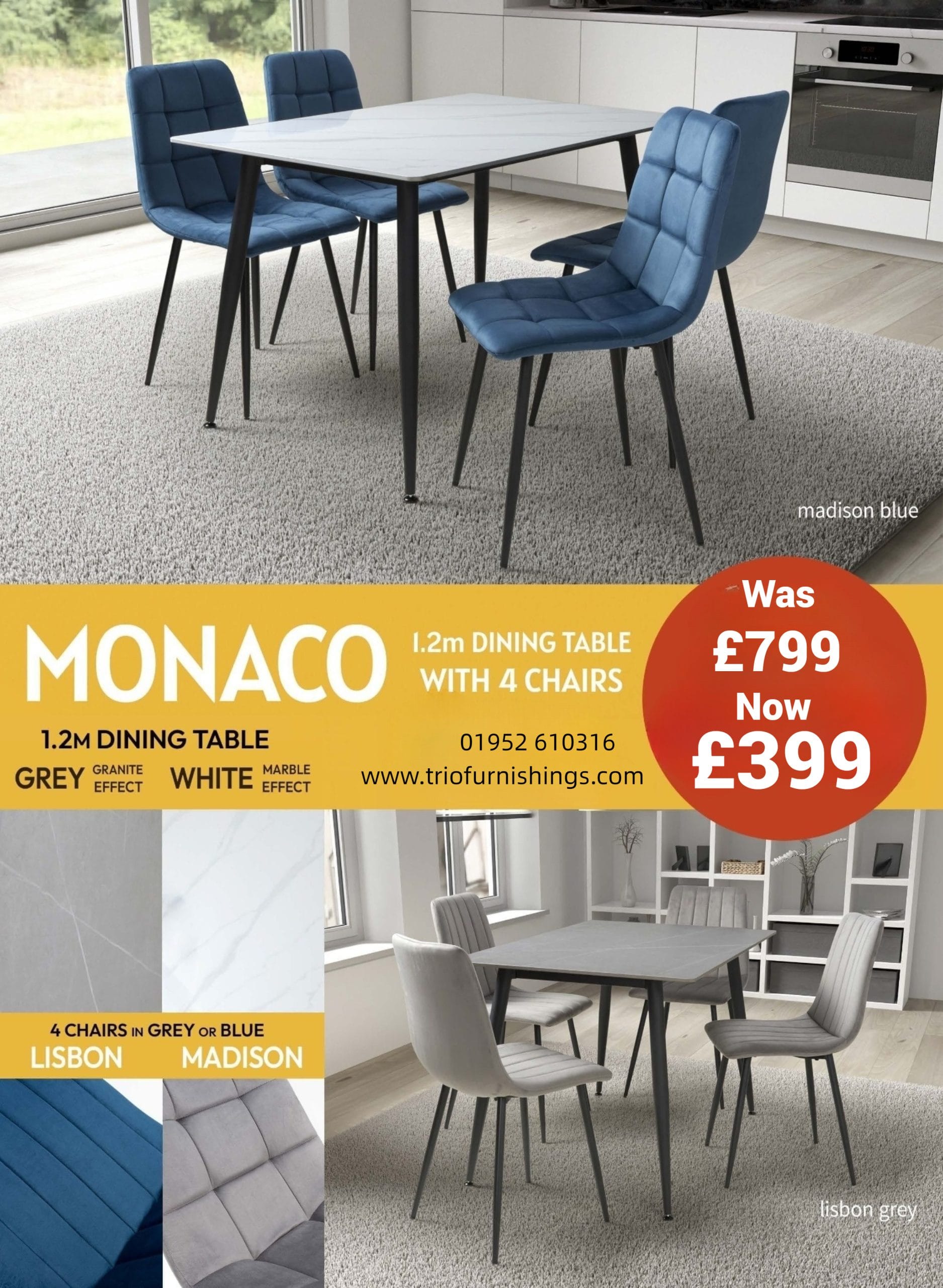 Be the first to review “Monaco 1.2m Grey & 4 Chair Dining Set”